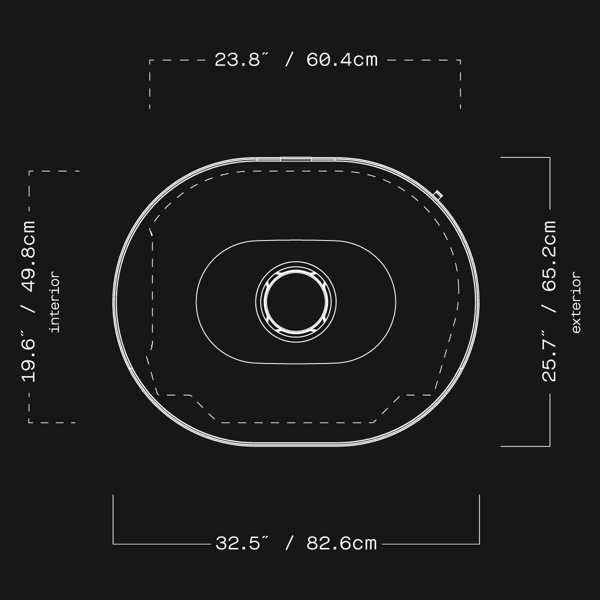 - External oven dimensions W 826mm (32.5") x d 652mm (25.7") x h 986mm (38.8")