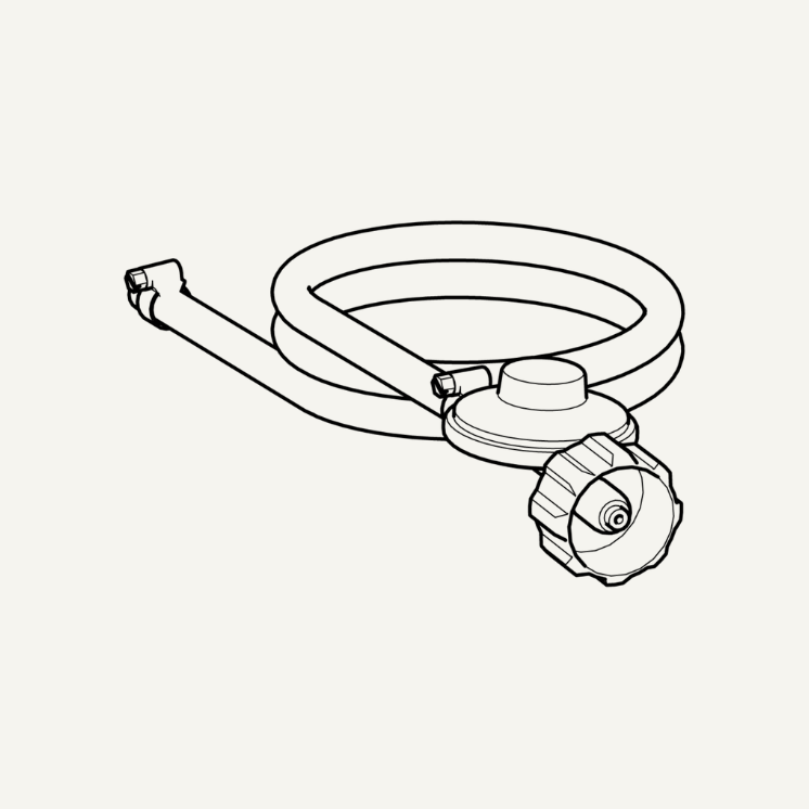 Dome Gen 2 Series gas hose with quick fit connection and 30mbar screw fit adaptor for connection to a standard US propane tank.
